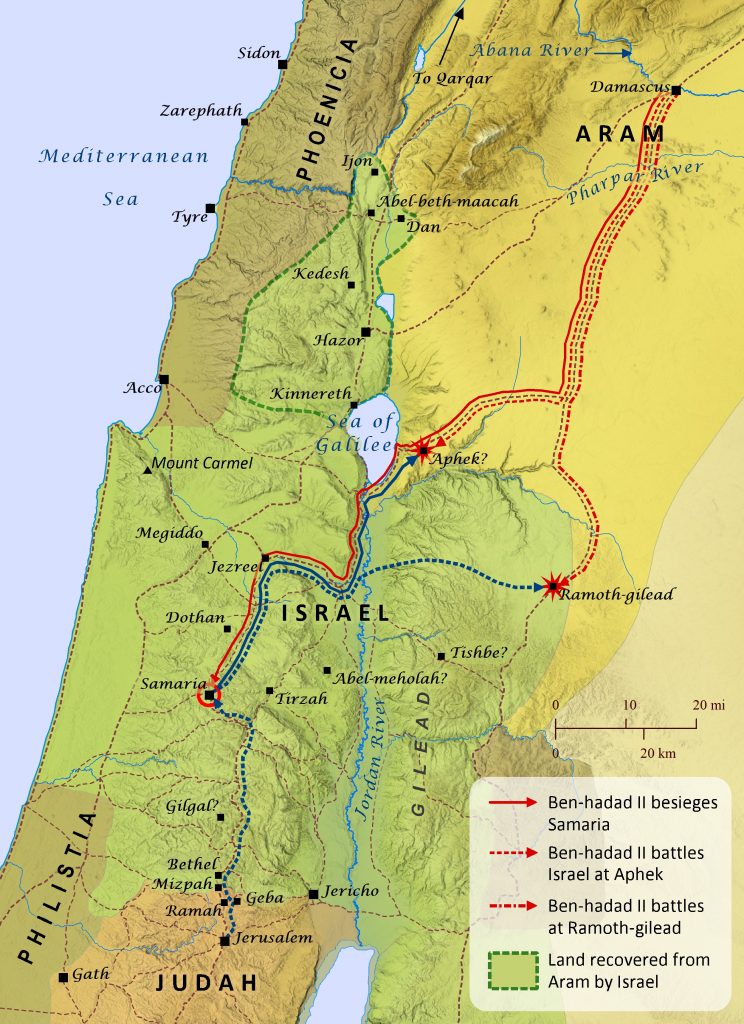 Though righteousness often results in worldly blessings (see much of the book of Proverbs), the Bible’s judgment of Ahab as one of the most wicked kings in Israel’s history shows that worldly success cannot always be regarded as a measure of one’s favor before God, because Ahab was also one of the strongest kings in Israel’s history up to that time. Ahab became king after the death of his father Omri, who had usurped the throne and began to reassert Israel’s dominance in the region (1 Kings 16:8-28). Ahab married Jezebel, the daughter of the Sidonian king Ethbaal, and adopted her zealous worship of Baal, even building a temple to Baal in the new capital of Samaria (1 Kings 16:29-33). The Bible devotes three full chapters to recounting several other wicked acts by Ahab and his confrontations with the prophet Elijah (1 Kings 17-19). The Bible also notes that Ahab rebuilt the city of Jericho at the cost of his firstborn son and his youngest son, just as Joshua prophesied (Joshua 6:26; 1 Kings 16:34). Yet the Bible also notes that Ahab engaged Ben-hadad II of Aram in multiple battles (1 Kings 20-22), and Assyrian records note that Ahab fought in a great battle that took place at the city of Qarqar north of Israel (853 B.C.). In that battle a coalition of about a dozen nations (including Israel) fought against the Assyrians and ultimately stopped them from advancing further south into the Levant for several years. Ahab may have also recovered land in northern Israel taken by Aram during Baasha’s reign (1 Kings 15:9-24; see 1 Kings 20:26-34). Archaeological evidence suggests that Ahab fortified Megiddo and Hazor during his reign as well. Soon after the battle at Qarqar Ahab was killed while fighting alongside King Jehoshaphat of Judah to recapture Ramoth-gilead from Aram (1 Kings 22).
