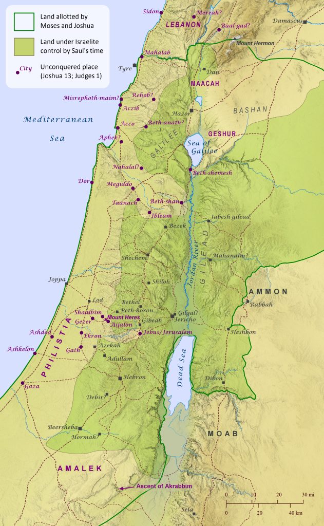 Sometime during David’s reign in Hebron, a group of soldiers led by Joab traveled north to the town of Gibeon, where some soldiers led by Abner, the commander over Ish-bosheth’s forces, had already gathered. The two sides agreed to a contest of young champions, but the contest ended with all the champions slaughtering each other. This led to a fierce battle among the rest of the soldiers, with Joab’s men pursuing Abner’s men most likely westward, since David’s men had probably positioned themselves to the east of Abner’s men after arriving at Gibeon, thus blocking their escape route back to Mahanaim. Abner killed Joab’s brother Asahel during the pursuit and continued to flee to the hill of Ammah. There Abner’s men took a stand on the top of the hill to defend him against Joab’s men. Abner then called out to Joab and convinced him to call a truce. Abner and his men returned to Mahanaim, and Joab returned to count his men. Then Joab and his men traveled to Bethlehem and buried Asahel in his father’s tomb there. After this Joab and his forces returned to David at Hebron. The hill of Ammah, where Abner’s men took their stand, is specifically described as lying “before Giah on the way to the wilderness of Gibeon.” Though the term “wilderness” (midbar) is almost always used to refer to locations east of the Central Ridge Route, which runs north-south along the watershed of Israel, the patriarch Reuben also used the term to refer to the area of Dothan, which is west of the watershed (Genesis 37:22; see map here), to indicate that it was sparsely populated. It is possible, then, that the wilderness of Gibeon similarly referred to the sparsely populated, hilly region lying to the west of Gibeon and the watershed. Thus the “way to the wilderness of Gibeon” could have been the ancient route that passed through this area, which was later paved by the Romans. Based on these assumptions, this author has found that the most logical location for the hill of Ammah is the slope immediately northwest of the junction where the road heading southwest from Gibeon meets the way to the wilderness of Gibeon. This, then, coincides perfectly with the location of el-Qubeiba, which has been identified as a very viable candidate for the town called Emmaus in the New Testament (Luke 24:13-36). So it is possible that the hill of Ammah is the same as the town of Emmaus, and this is further supported by the clear similarities between the Hebrew name Ammah and the Greek name Emmaus. The site of el-Qubeiba had been regarded as Emmaus since as far back as the Crusader era and probably much earlier, since the Crusaders noted that they found a Roman fort there called Castellum Emmaus (see an excellent summary in J. Carl Laney’s doctoral dissertation here). Finally, the word Giah, typically translated as a placename in 2 Samuel 2:24, may instead be referring to the valley or the entrance to the valley that runs parallel to the way to the wilderness of Gibeon.